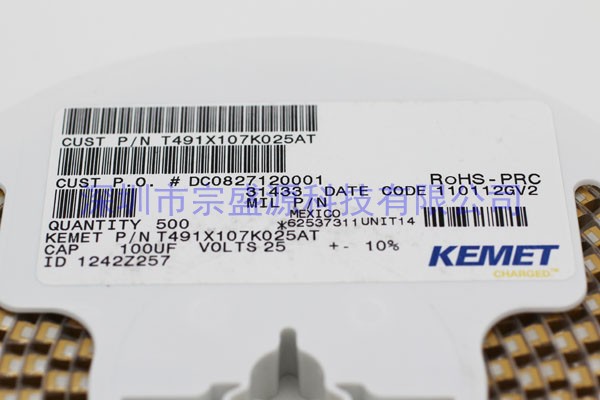 產(chǎn)品名稱:KEMET鉭電容 7343 25V 100UF X型 T491X107K025AT