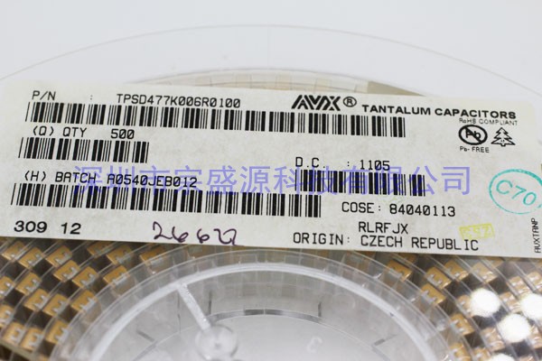 AVX鉭電容,AVX就是一家從事無源電子元器件和互連接產品的設計、開發、生產和銷售的公司,鉭電容是由稀有金屬鉭加工而成,先把鉭磨成微細粉,再與其它的介質一起經燒結而成。目前的工藝有干粉成型法和濕粉成型法兩種。鉭電容由于金屬鉭的固有本性,具有穩定好、不隨環境的變化而改變、能做到容值很大等特點,在某些方面具有陶瓷電容不可比較的一些特性,因此在很多無法使用陶瓷電容的電路上鉭電容被廣泛采用。其中AVX公司生產的鉭電容的產量相當可觀。