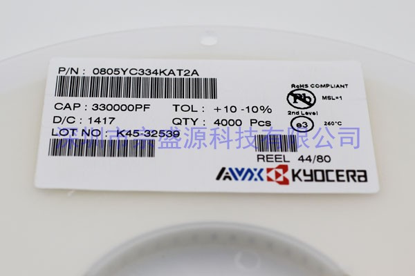 產(chǎn)品名稱:AVX陶瓷電容 0805 16V 0.33UF 0805YC334KAT2A