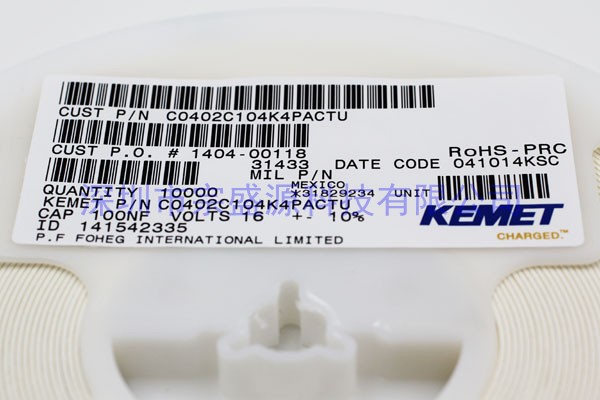 產品名稱:KEMET電容 0402 16V 0.1UF C0402C104K4PACTU