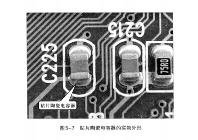 貼片陶瓷電容是應用最多的一種電容,它的電路符號為"┤├”,在電路中,這種電容器的代號為"C”,貼片陶瓷電容器的實物外觀見圖5-7。
