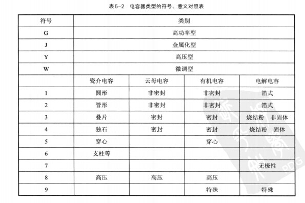 電容器類型的符號(hào)、意義對(duì)照表如表5-2所示。