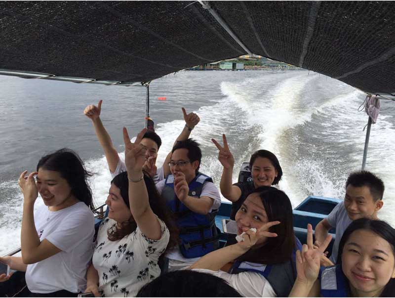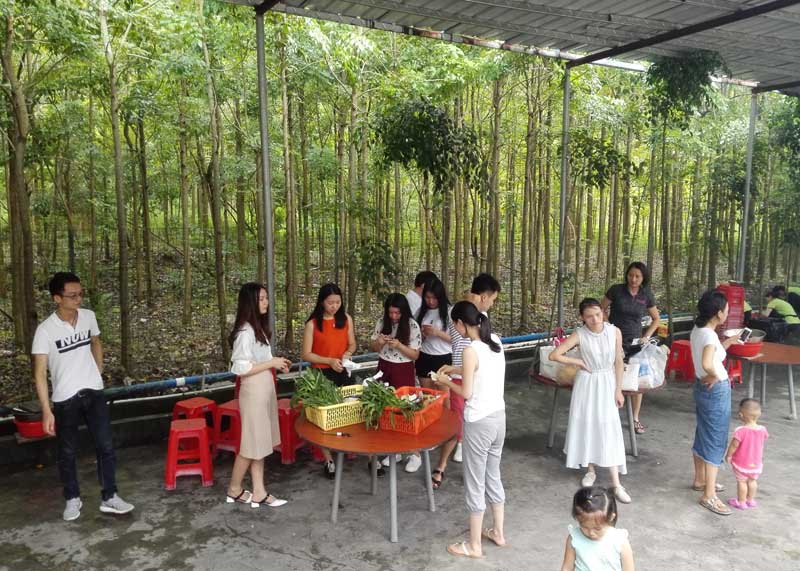 因天氣原因,原本打算取消的行程在同事們的一致堅持下,還是按原計劃出行了。天公作美,原本天氣預報報的大雨天,一大早竟然出太陽了,不得不說老天爺太照顧我們宗盛源的小伙伴們了。上午九點,在指定地點集齊后,宗盛源的全體員工懷著愉悅的心情,哼著小調,乘坐著旅游大巴開往我們的目的地——小桂灣。經過一個小時的車程,我們安全抵達小桂灣,這里的風貌原始、植被豐富、空氣清新,在休整片刻后,我們便進入小桂灣吃喝玩樂模式。
